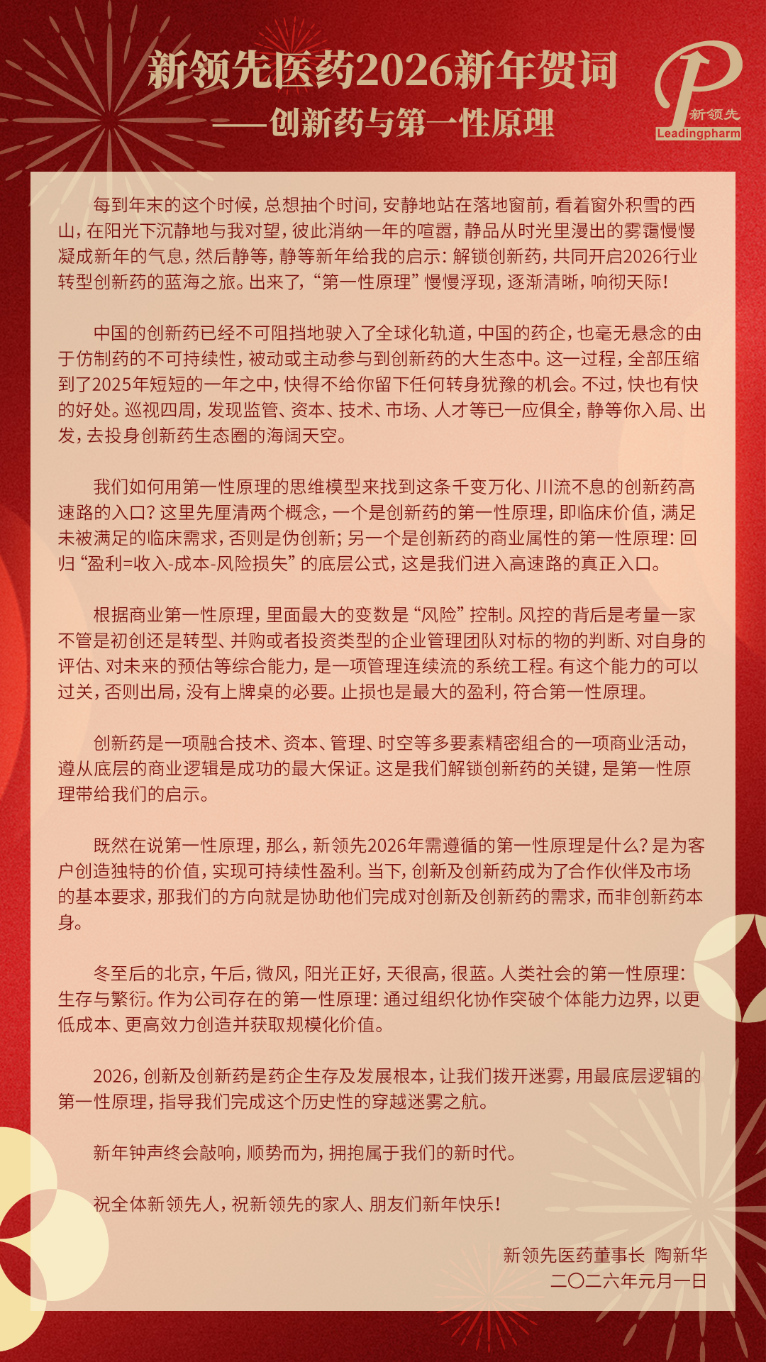 新领先医药2026新年贺词——创新药与第一性原理-澳门凯发