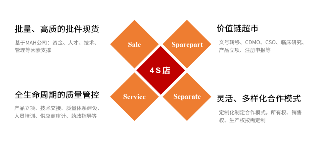2019 年修订的《药品管理法》中全面实施药品上市许可持有人(mah)制度,并将其作为基本制度、核心制度,贯穿于《药品管理法》。随着mah制度的不断深入,mah 4.0时代应运而生,从单纯的批件转让变为多元的“4s”立体服务。