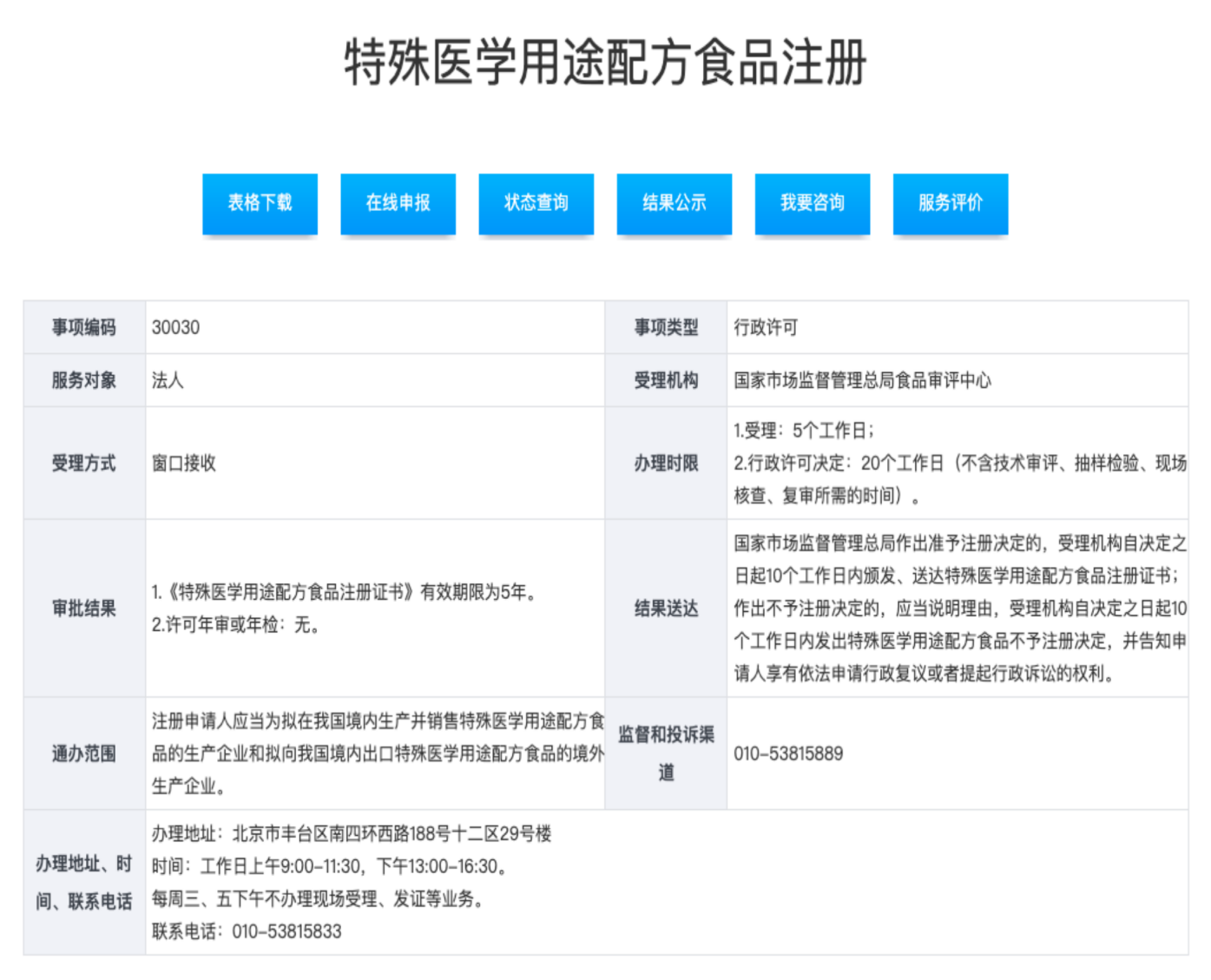 国家市场监督管理总局samr食品审评机构承担特殊医学用途配方食品注册申请的受理、审评等工作。可登录网站进行线上注册申报。网址: