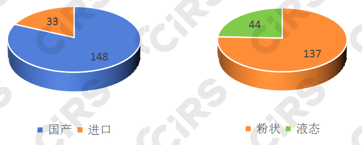 截至2024年4月1日,共计181款特医食品注册获批,国产148款,进口33款,国产产品注册数量已远超进口产品。在已批准的181款产品中,粉状产品居多,有137款产品的剂型为粉状,其余44款为液态产品。