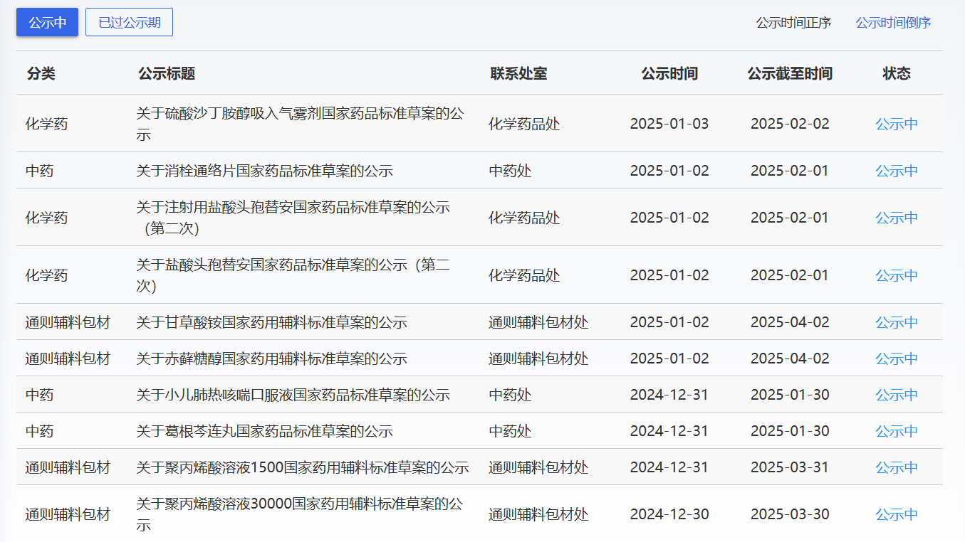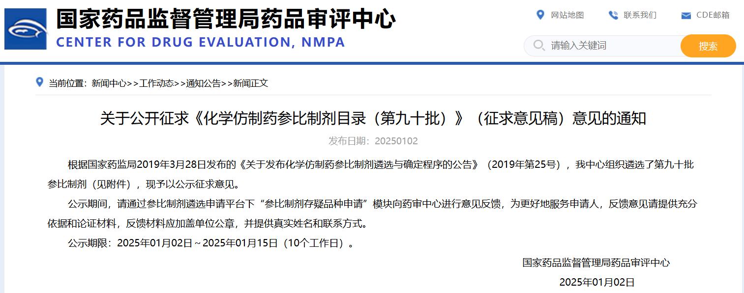 关于公开征求《化学仿制药参比制剂目录(第九十批)》(征求意见稿)意见的通知