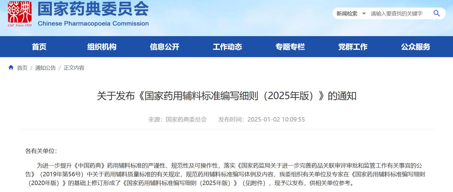 关于发布《国家药用辅料标准编写细则(2025年版)》的通知