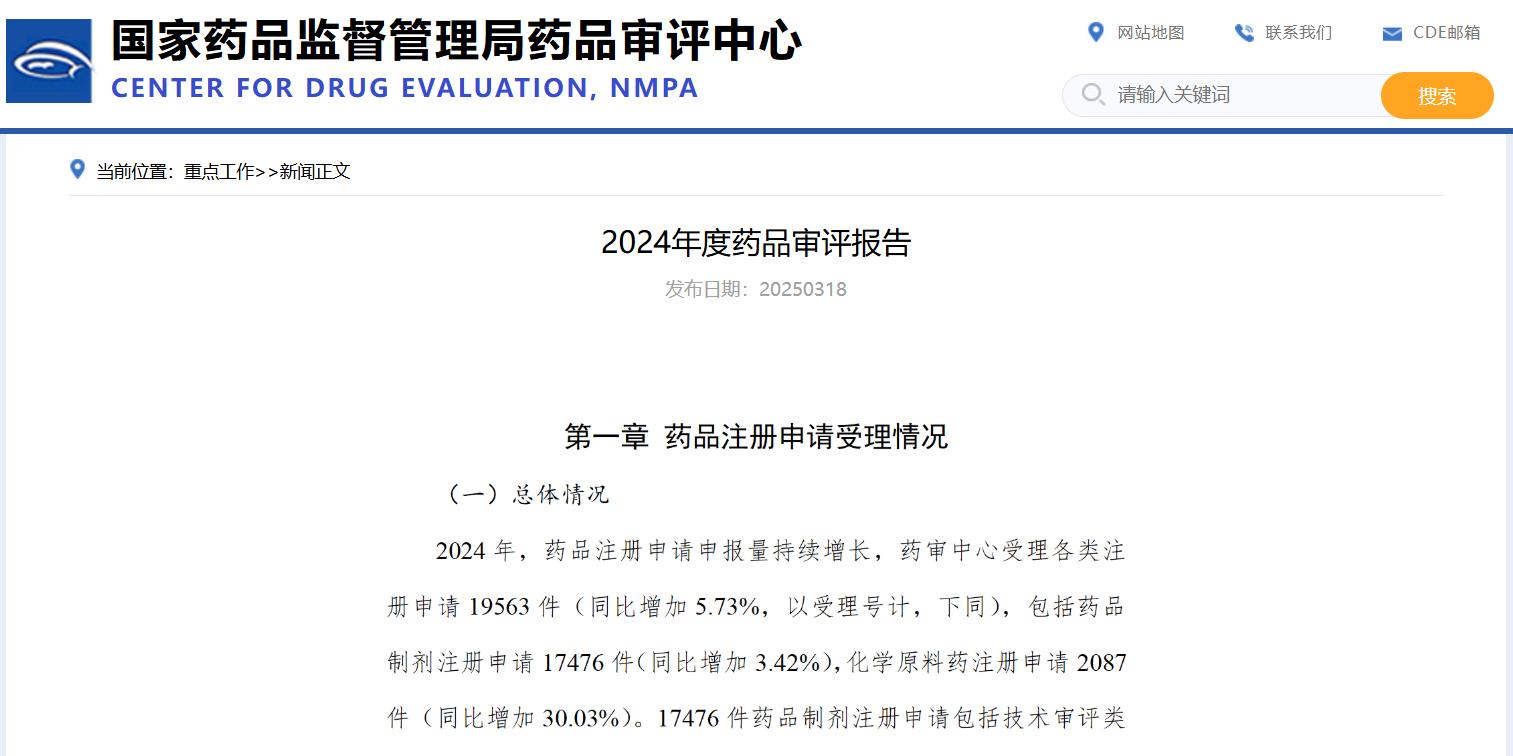 国家药品监督管理局药品审评中心发布2024年度药品审评报告。