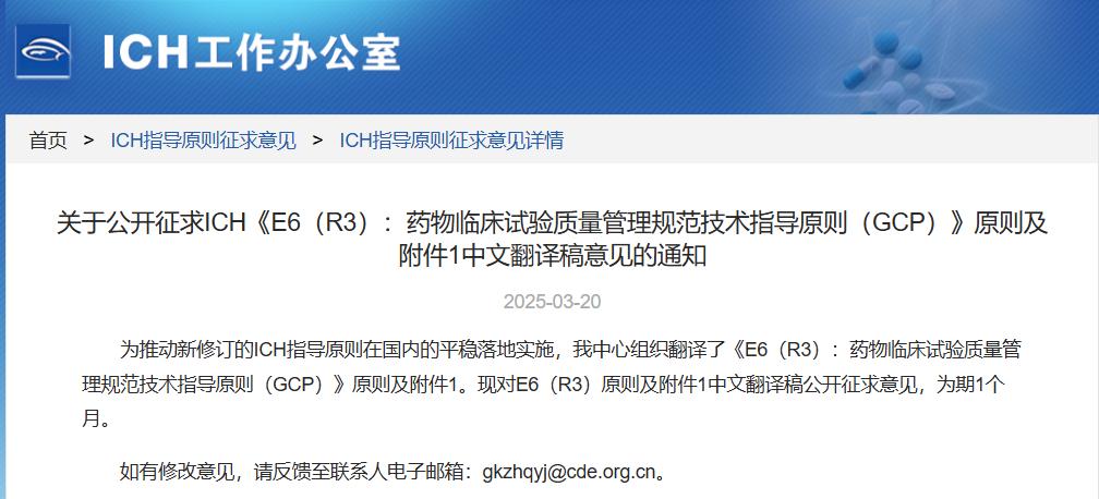 关于公开征求ich《e6(r3):药物临床试验质量管理规范技术指导原则(gcp)》原则及附件1中文翻译稿意见的通知