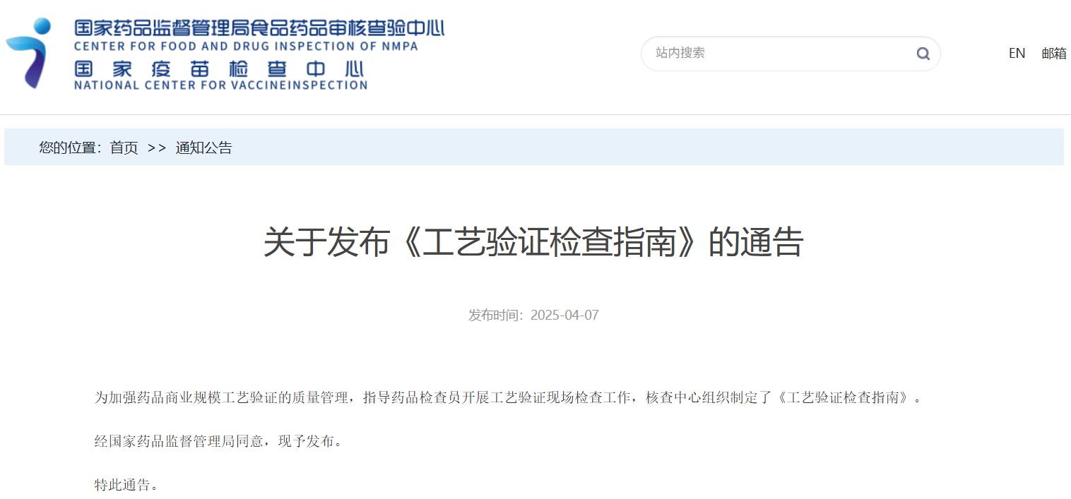 关于发布《工艺验证检查指南》的通告
