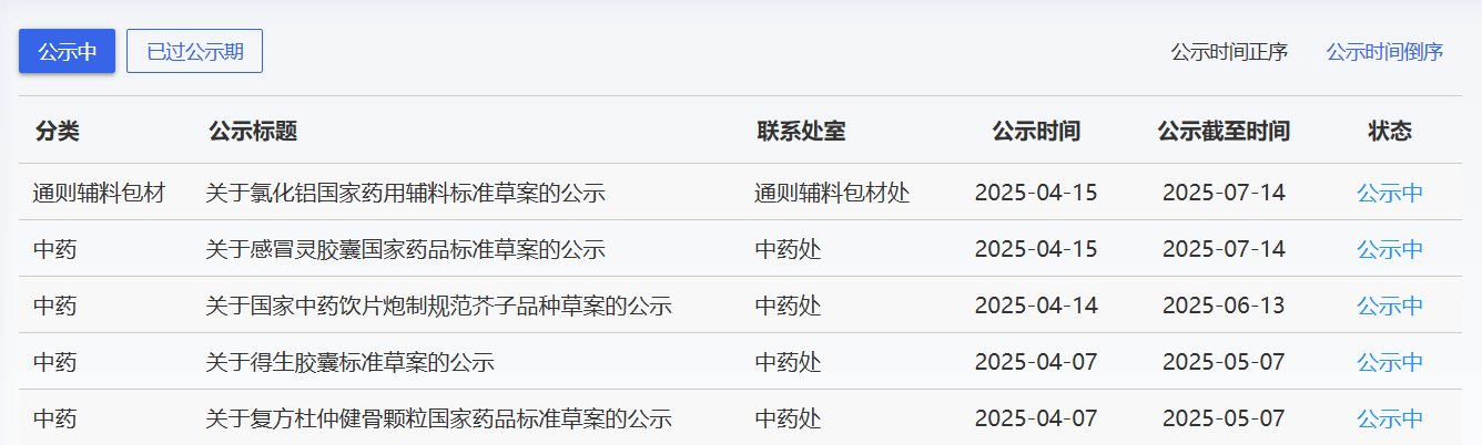 近期,药典委发布的标准草案公示如下: