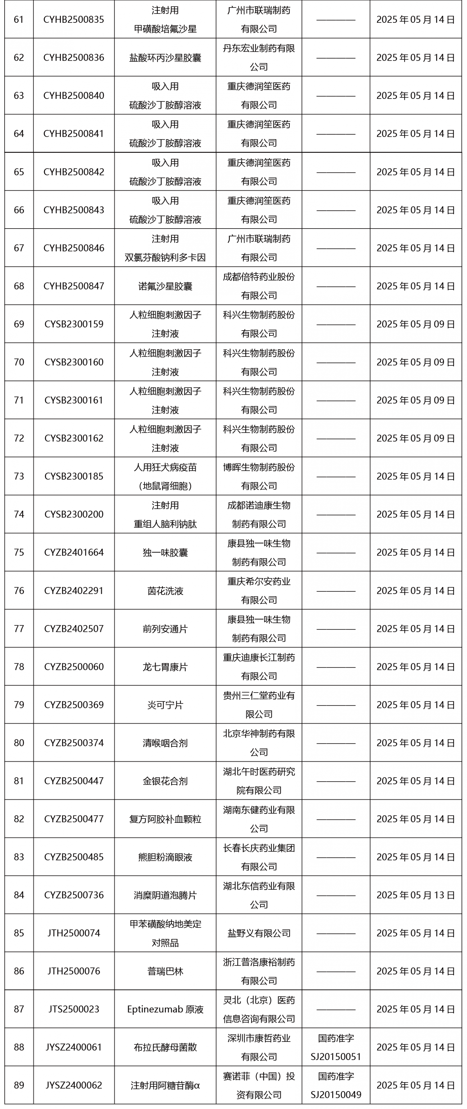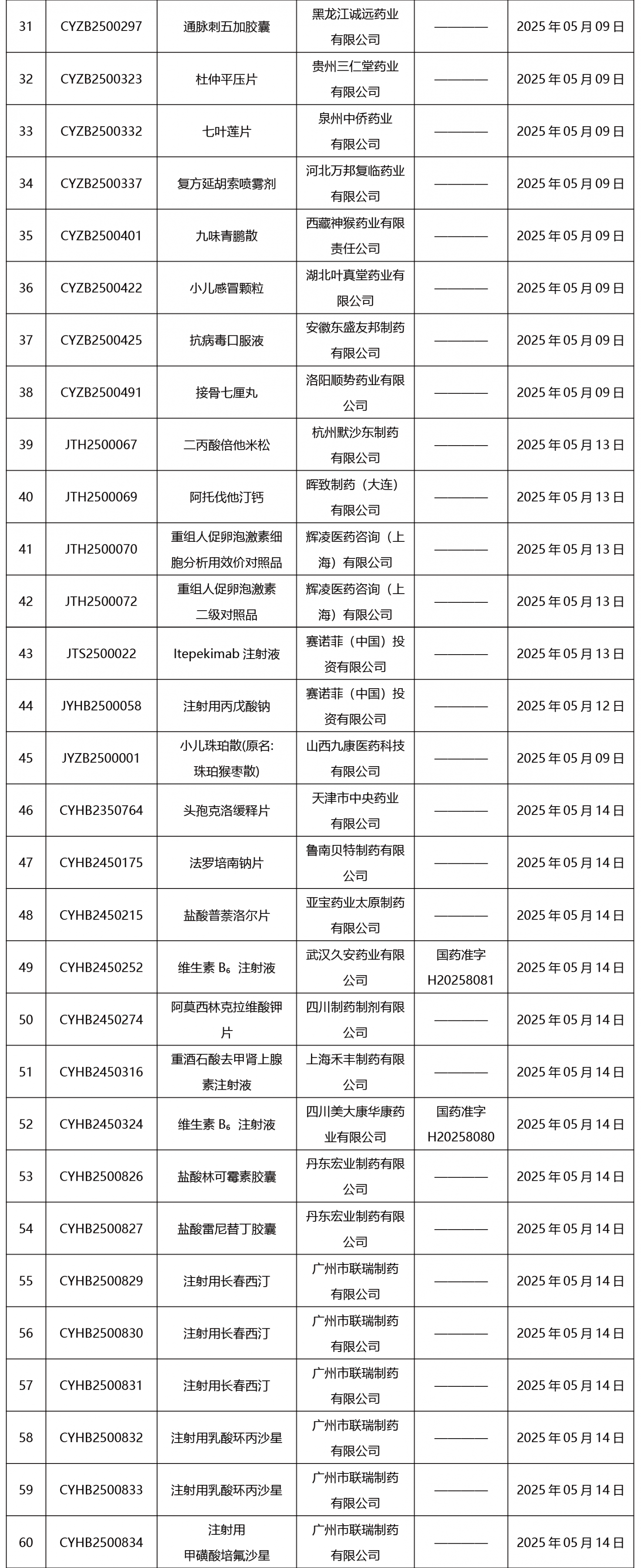 2025年05月16日中药品种保护受理公示国家药监局关于修订盐酸雷尼替丁注射制剂说明书的公告(2025年第49号)