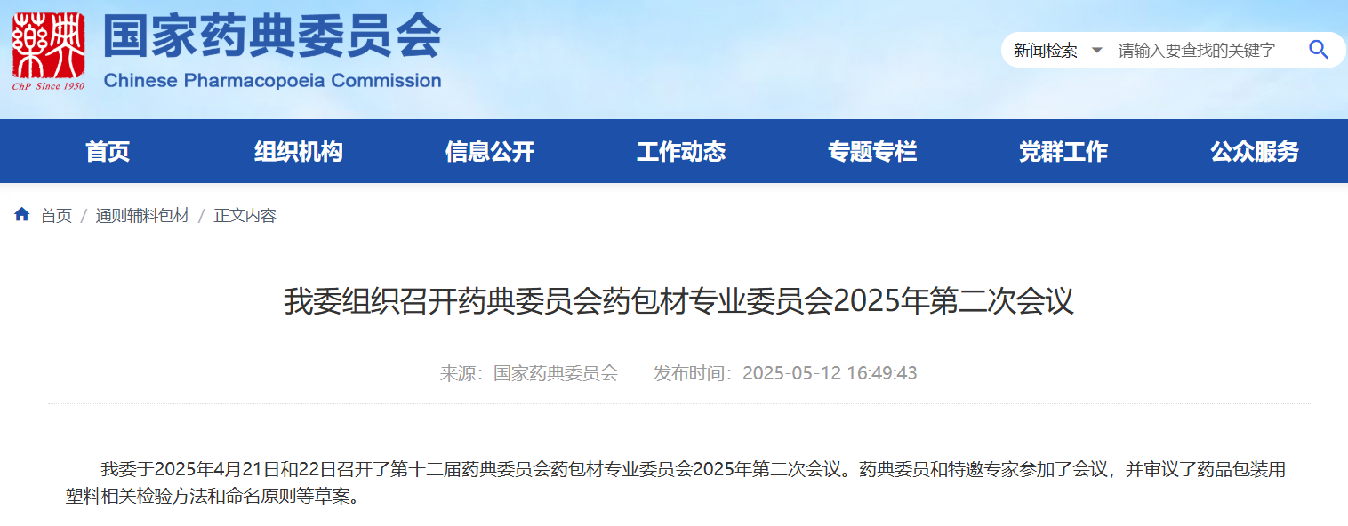 药典委组织召开药典委员会药包材专业委员会2025年第二次会议