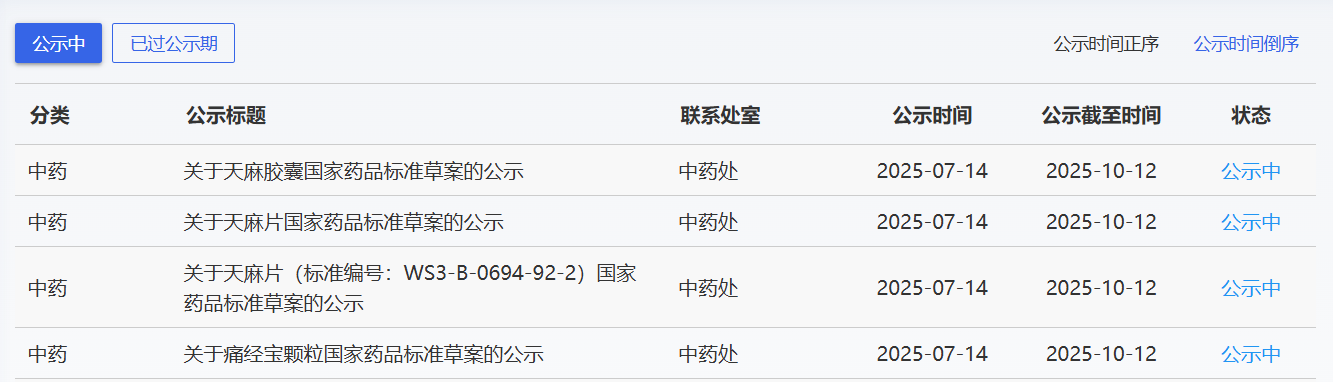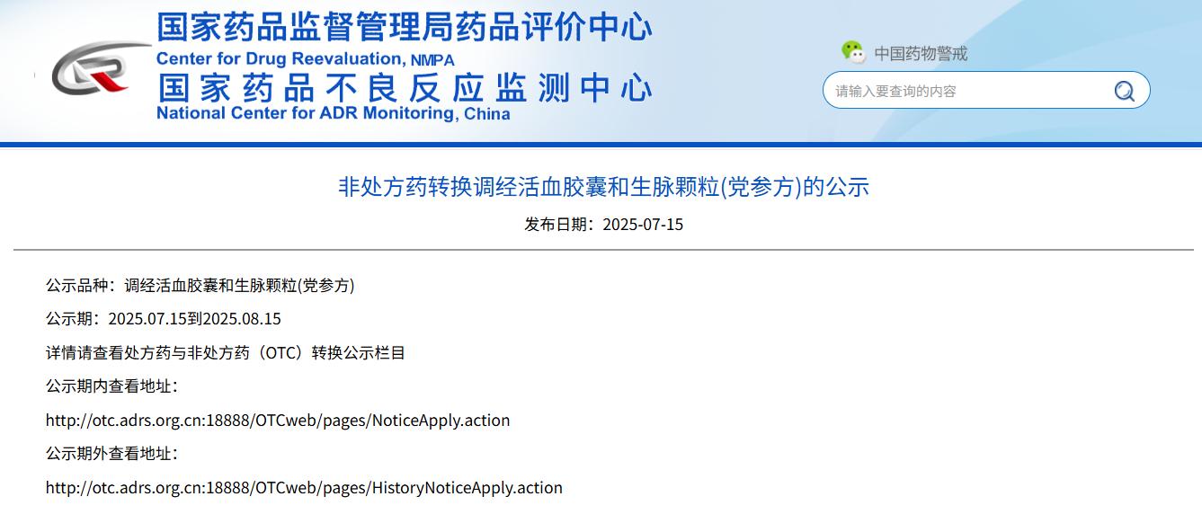 非处方药转换调经活血胶囊和生脉颗粒(党参方)的公示