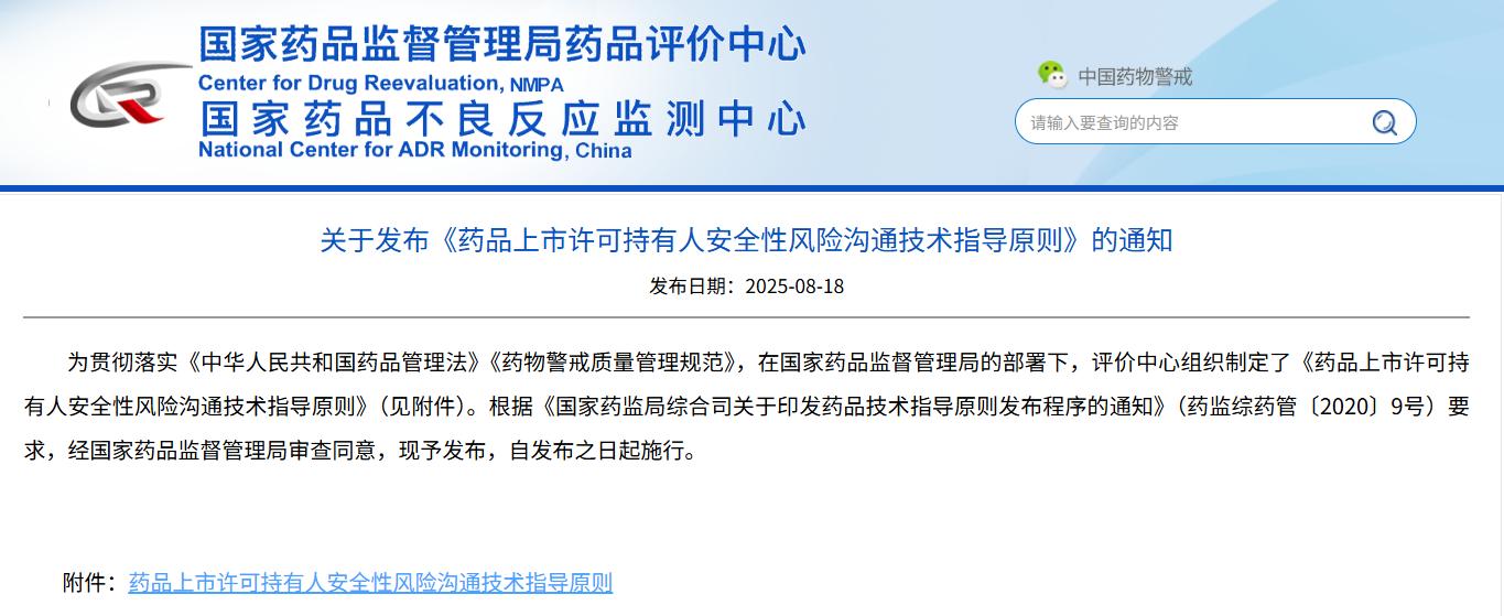 关于发布《药品上市许可持有人安全性风险沟通技术指导原则》的通知