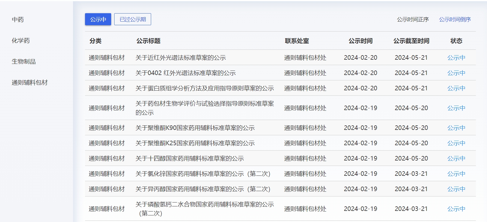 本周药典委发布11种药用辅料标准草案,3种指导原则标准草案,2种光谱法标准草案公示。