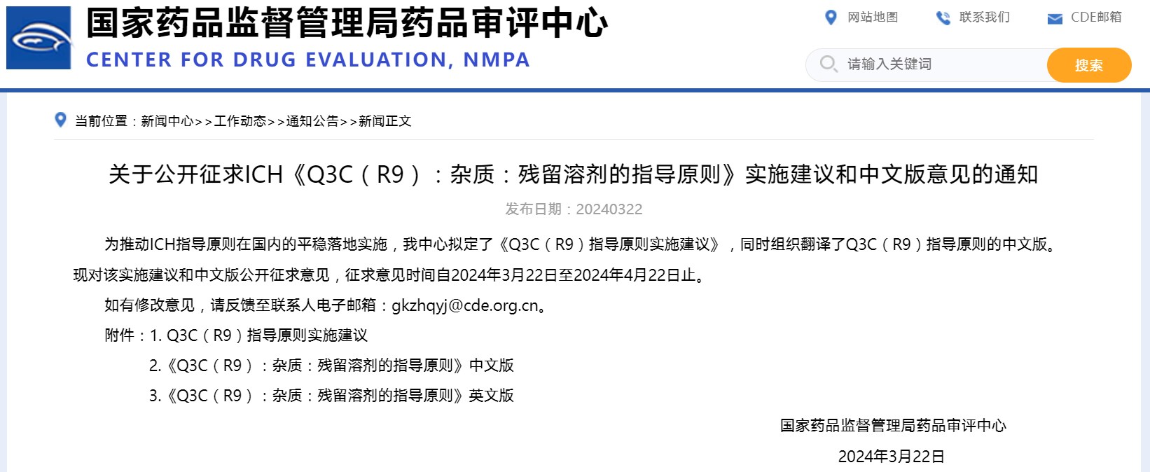 关于公开征求ich《q3c(r9):杂质:残留溶剂的指导原则》实施建议和中文版意见的通知