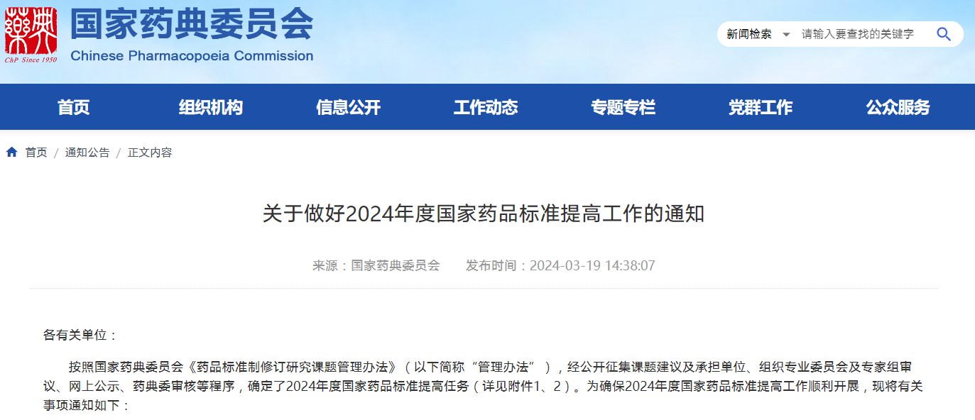 关于做好2024年度国家药品标准提高工作的通知