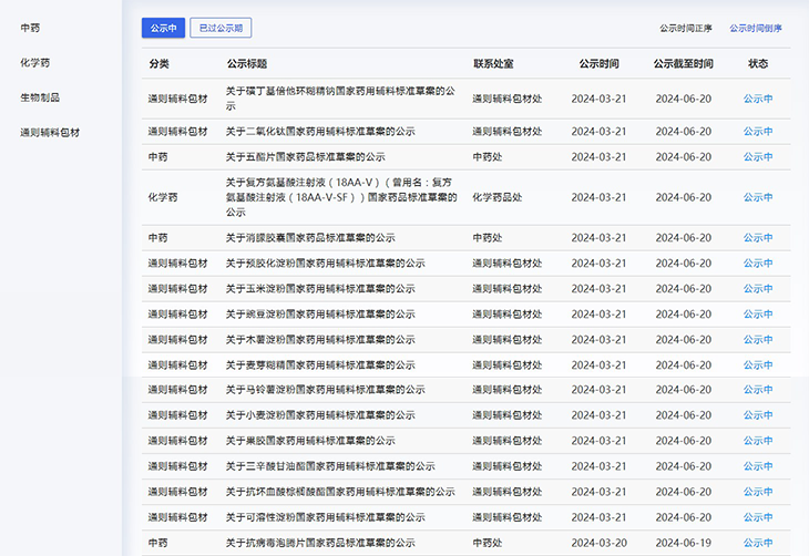 本周,药典委发布的药品及药用辅料标准草案如下