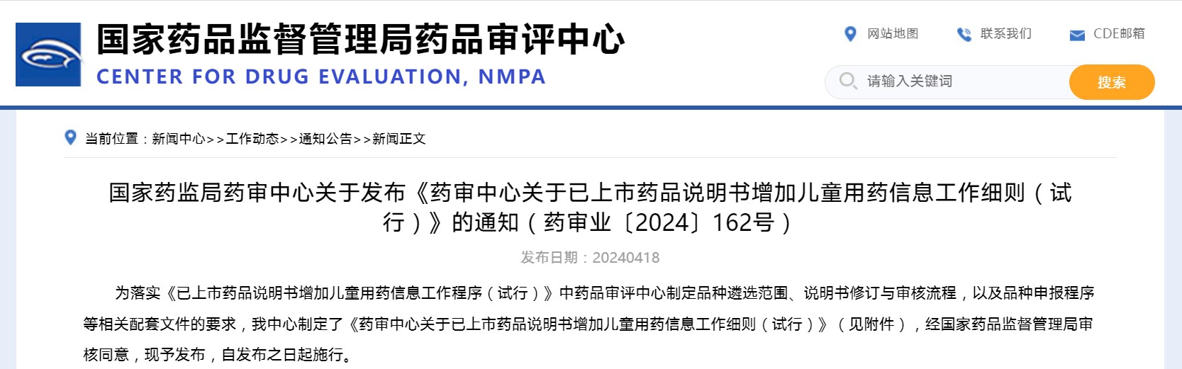 国家药监局药审中心关于发布《药审中心关于已上市药品说明书增加儿童用药信息工作细则(试行)》的通知