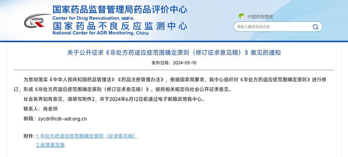 关于公开征求《非处方药适应症范围确定原则(修订征求意见稿)》意见的通知