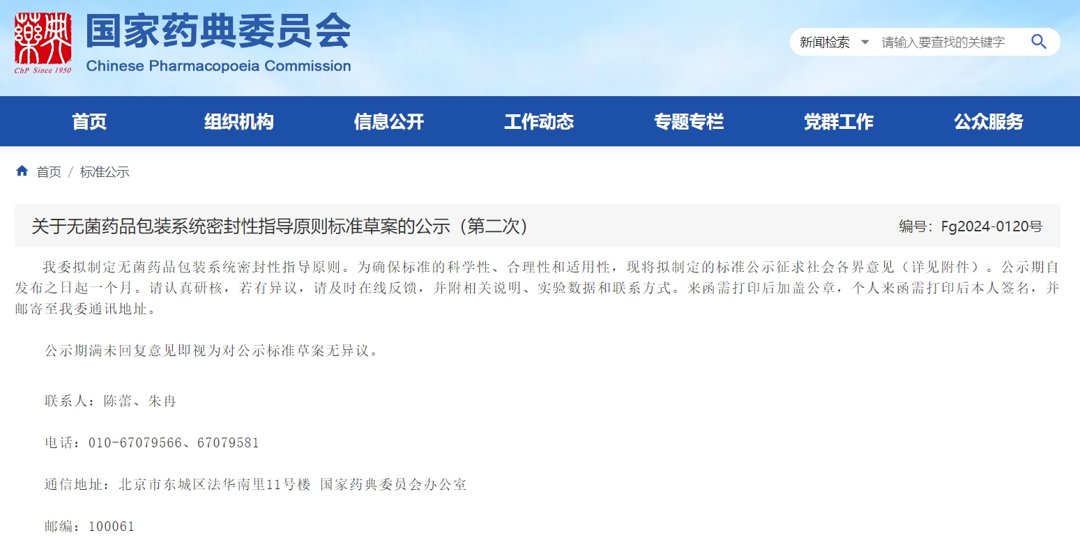 关于无菌药品包装系统密封性指导原则标准草案的公示(第二次)
