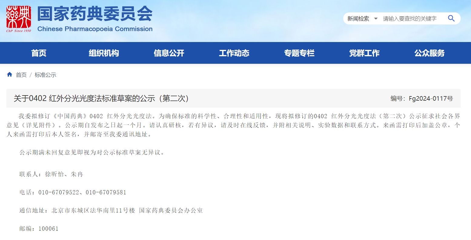 关于0402 红外分光光度法标准草案的公示(第二次)