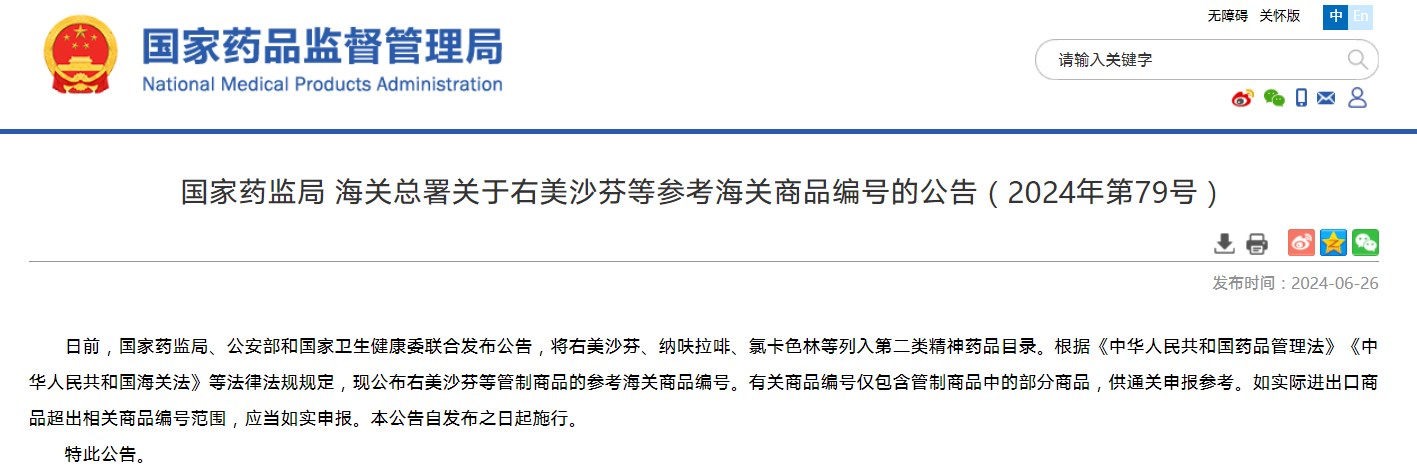 海关总署关于右美沙芬等参考海关商品编号的公告