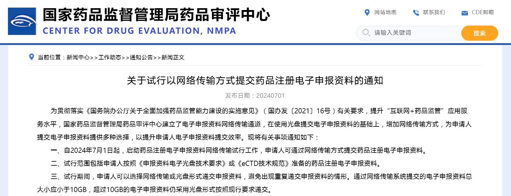 关于试行以网络传输方式提交药品注册电子申报资料的通知(附法规概览07.01-澳门凯发