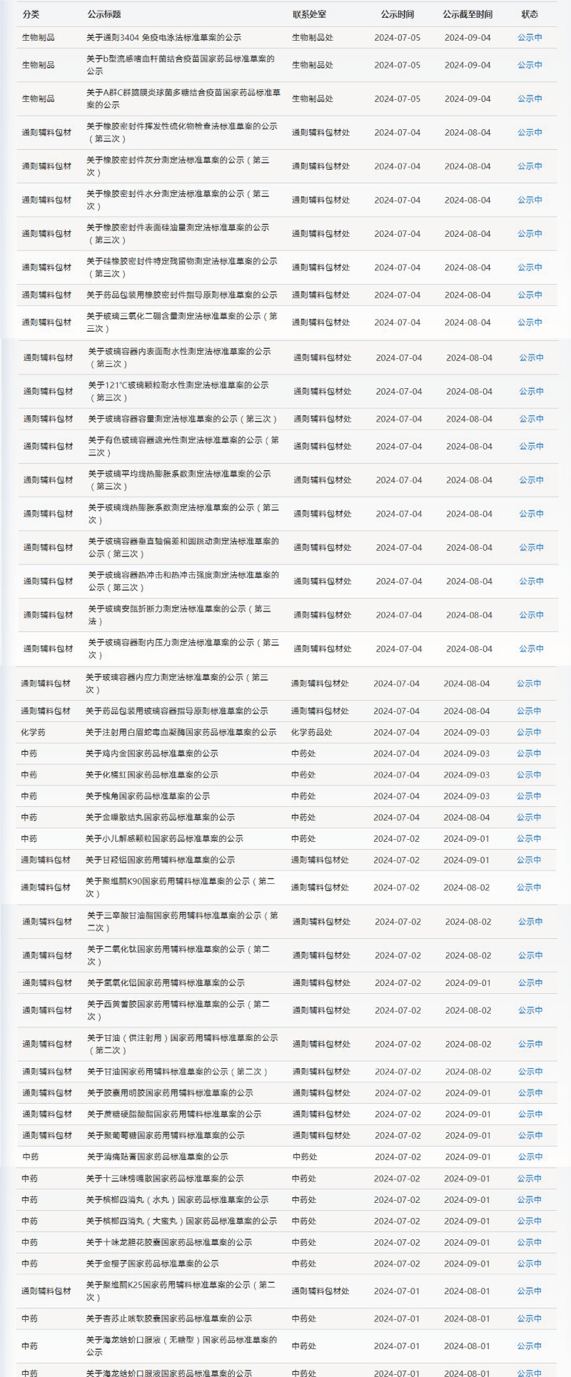 本周,药典委发布的标准草案公示如下: