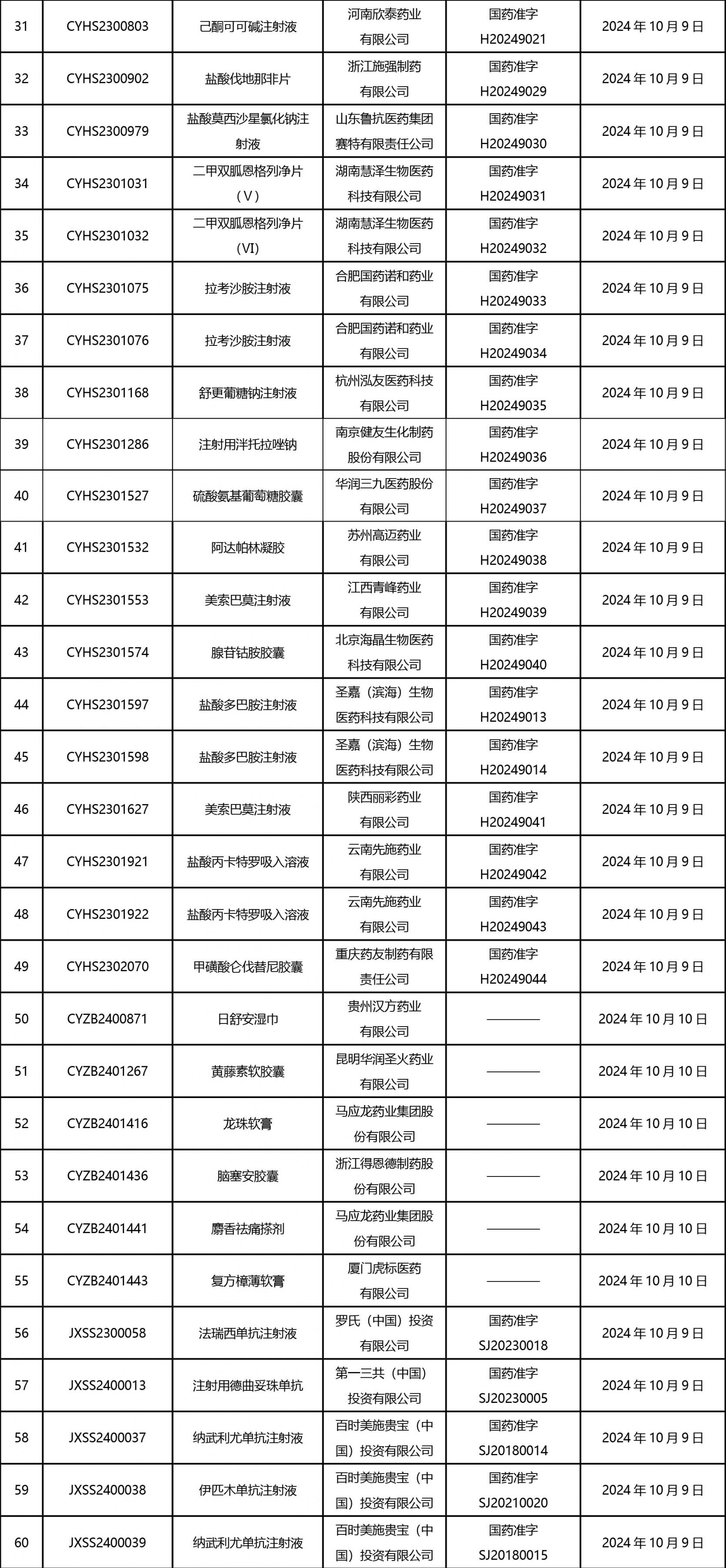 截止2024年10月18日 15:00本周发布161个待领取药品批准证明文件,其中注射液84个,一致性评价品种30个。