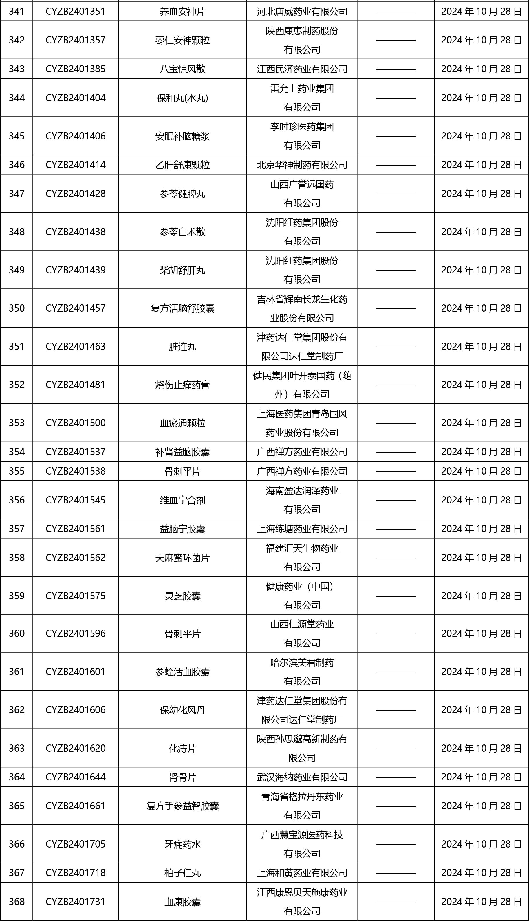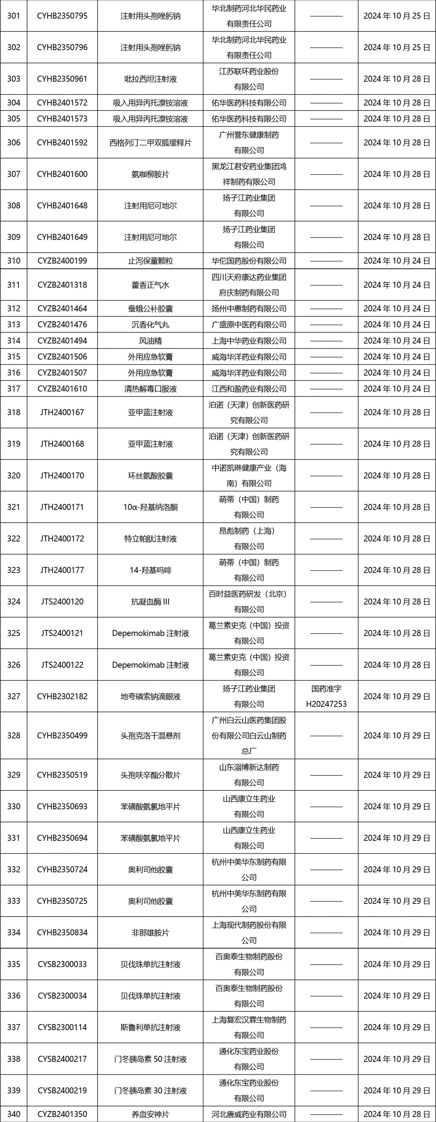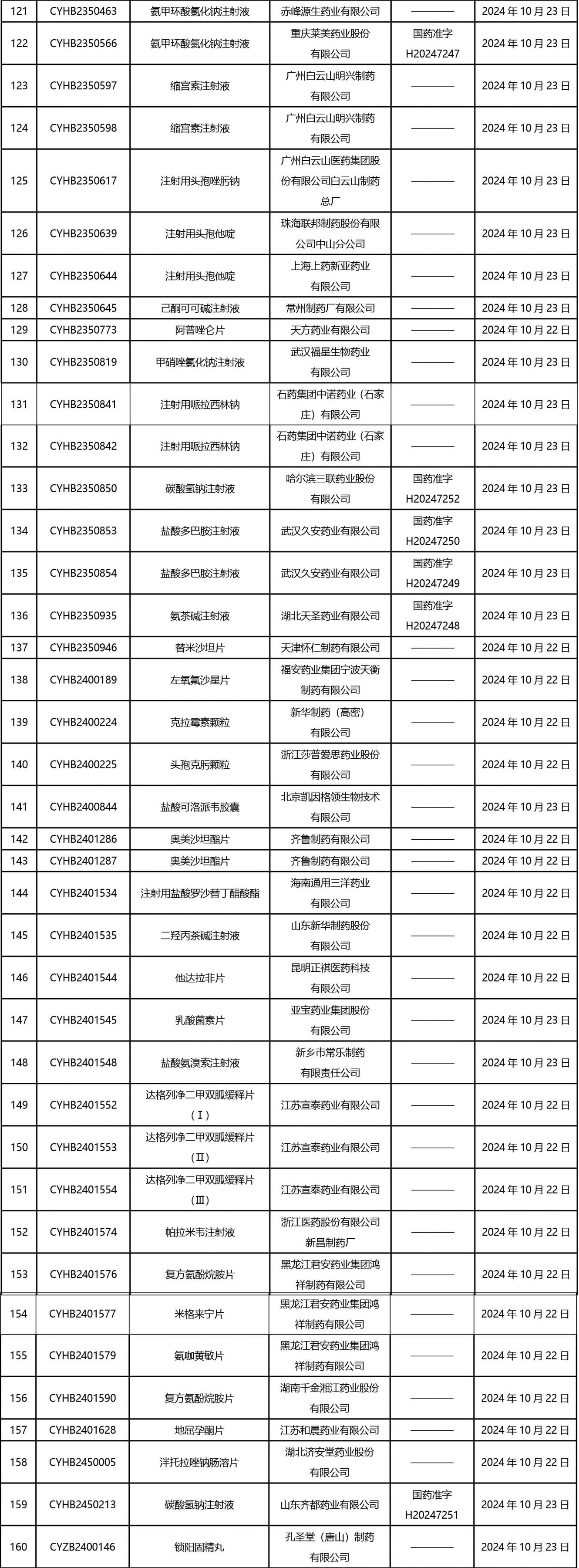 2024年10月21日至2024年11月1日 16:00发布368个待领取药品批准证明文件,其中注射液125个,一致性评价品种45个。