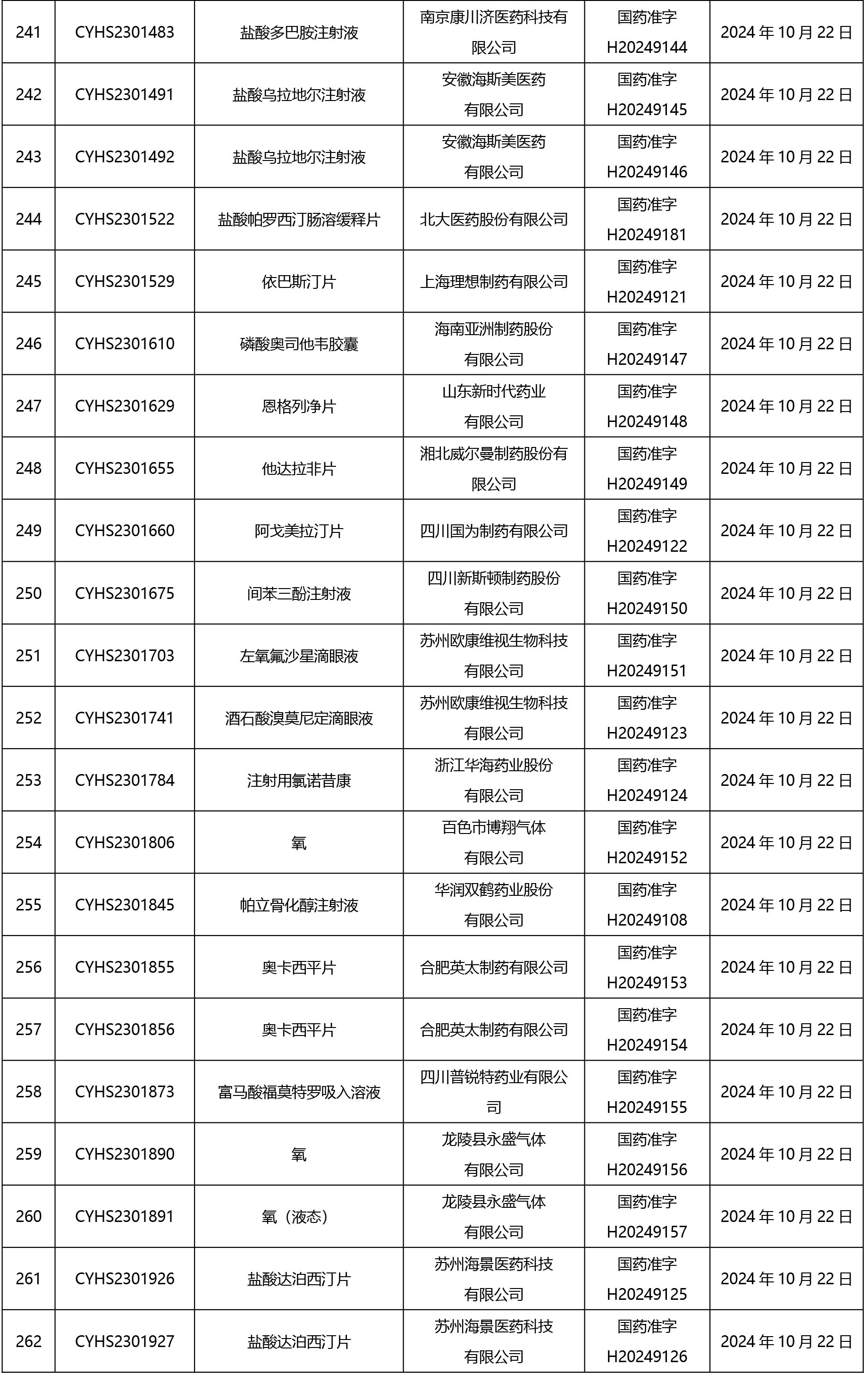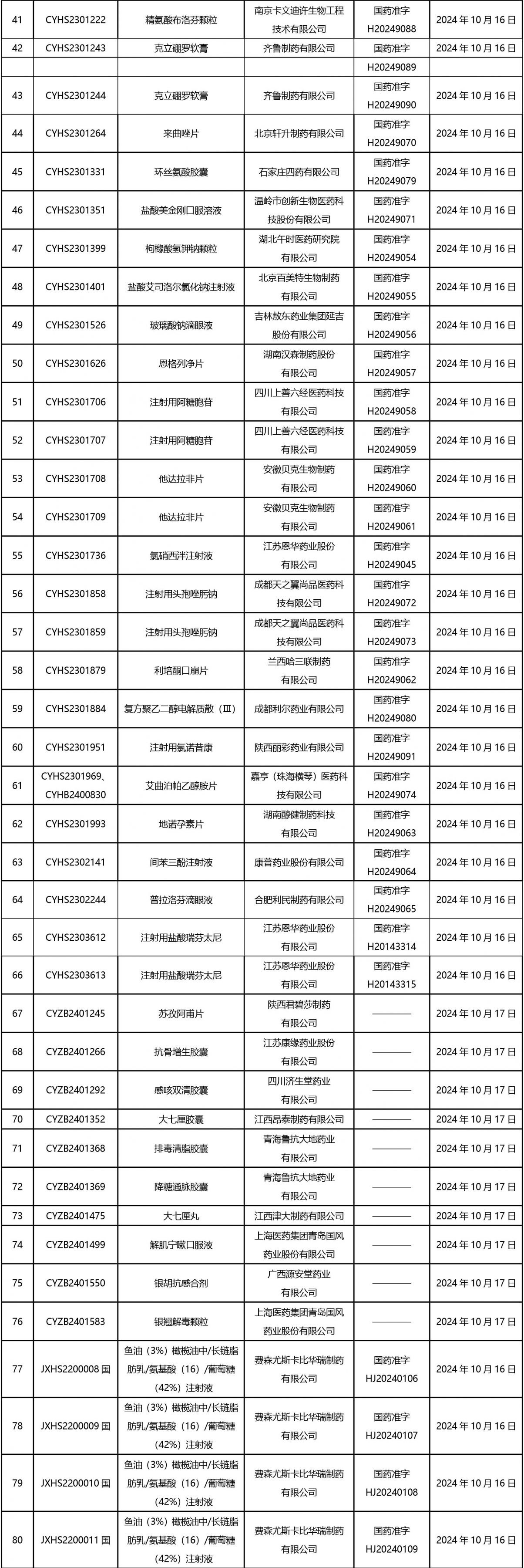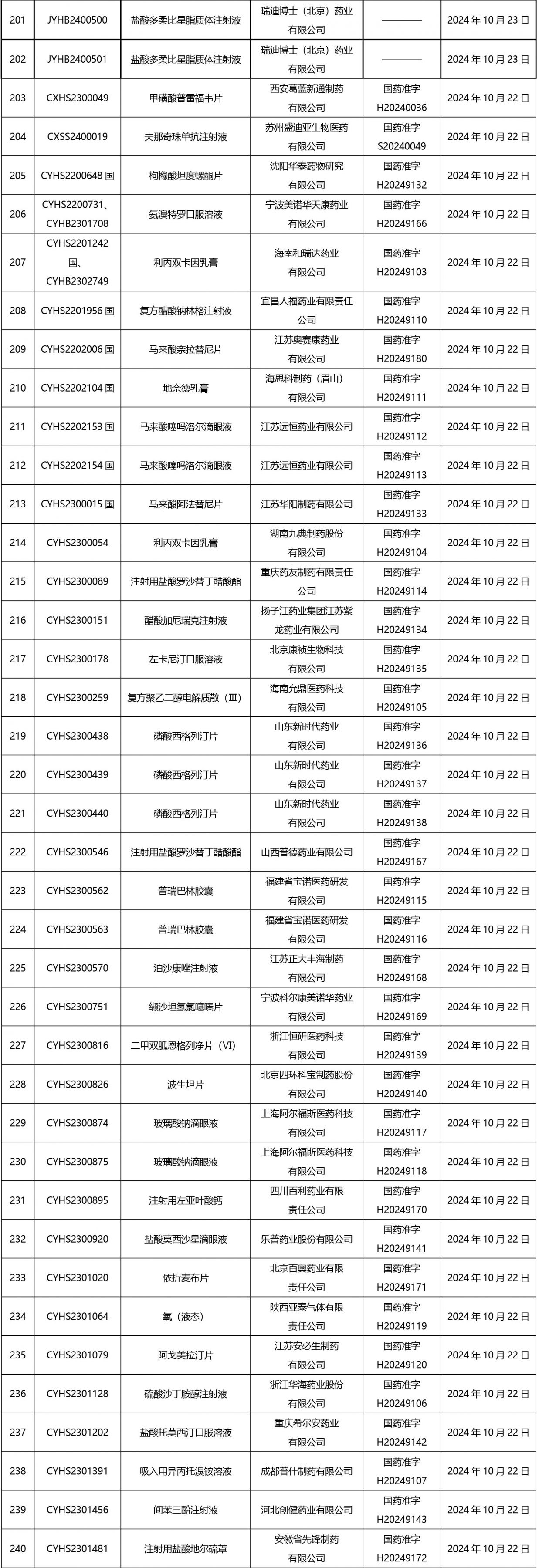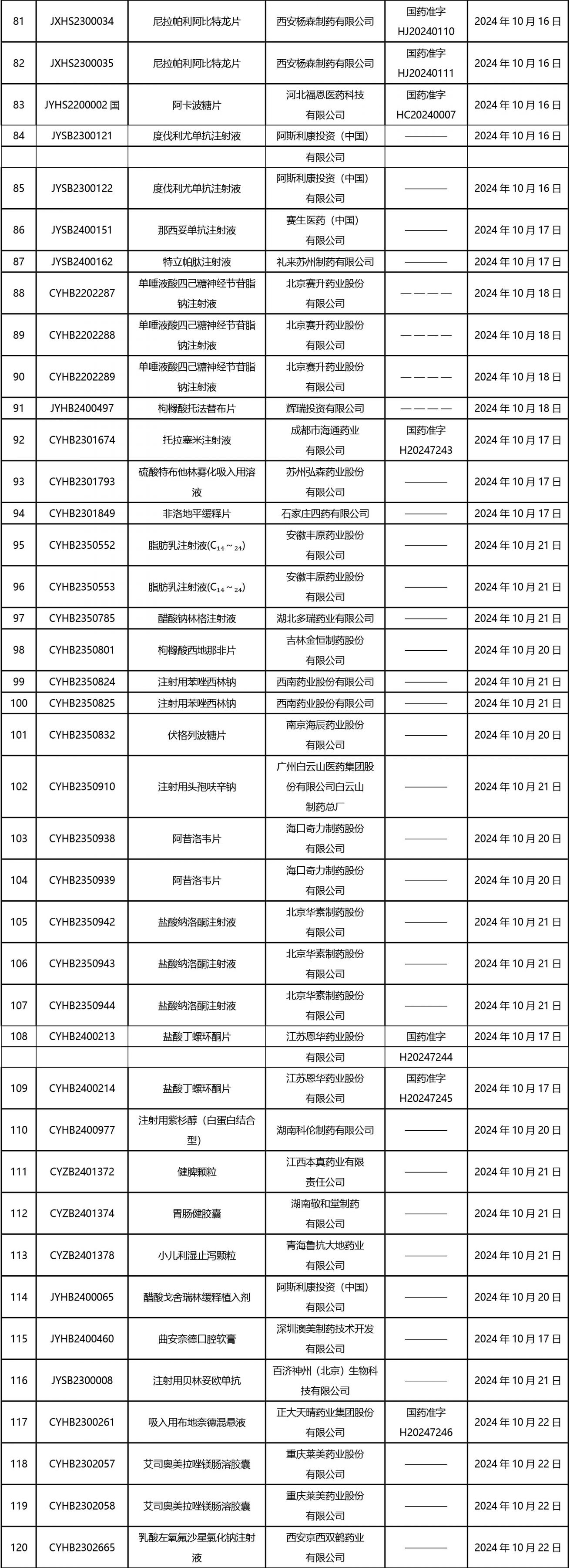 2024年10月21日至2024年11月1日 16:00发布368个待领取药品批准证明文件,其中注射液125个,一致性评价品种45个。